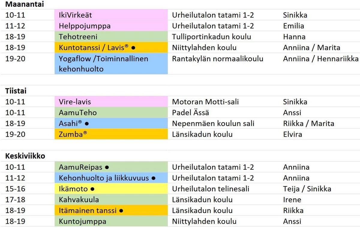Ryhmäliikuntakalenteri